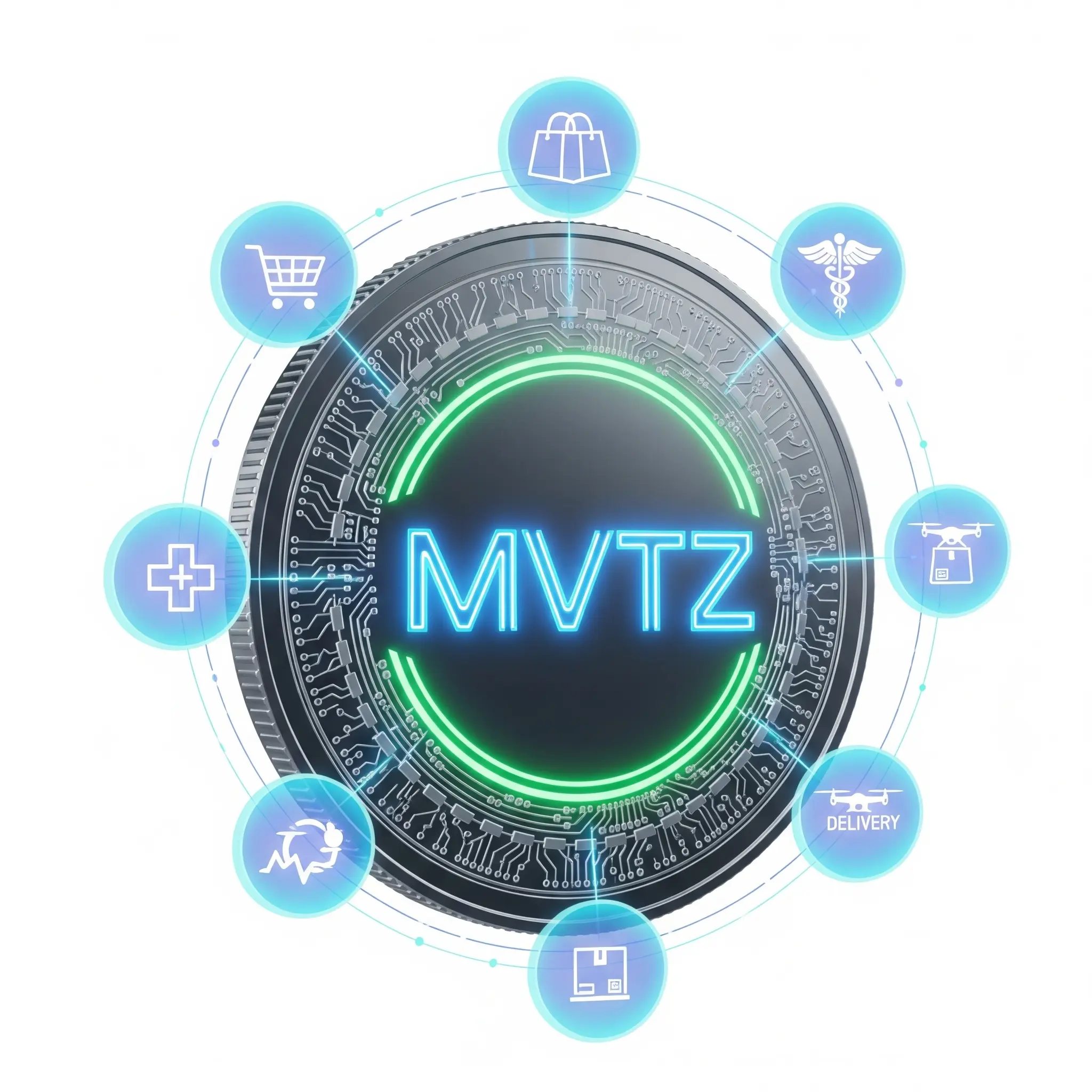 MVTZ operates on a secure token economy. Users earn income, trade digital assets, and interact with businesses—from ecommerce and delivery to healthcare—using native tokens.